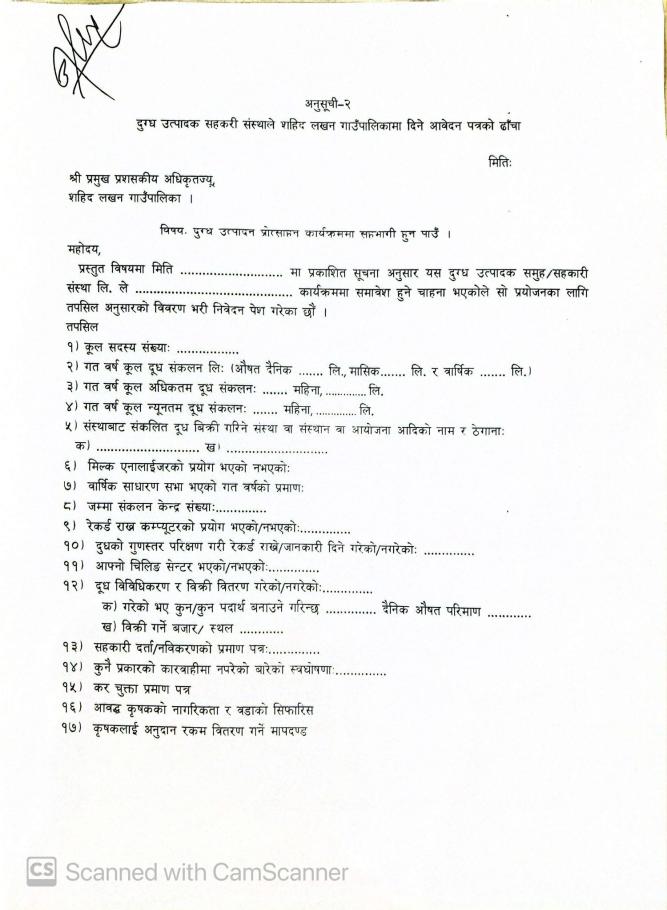 उत्पादनमा आधारित अनुदान कार्यक्रम सञ्चालन सम्बन्धी सूचना । (दुग्ध उत्पादन तथा प्रोत्साहन कार्यक्रम)