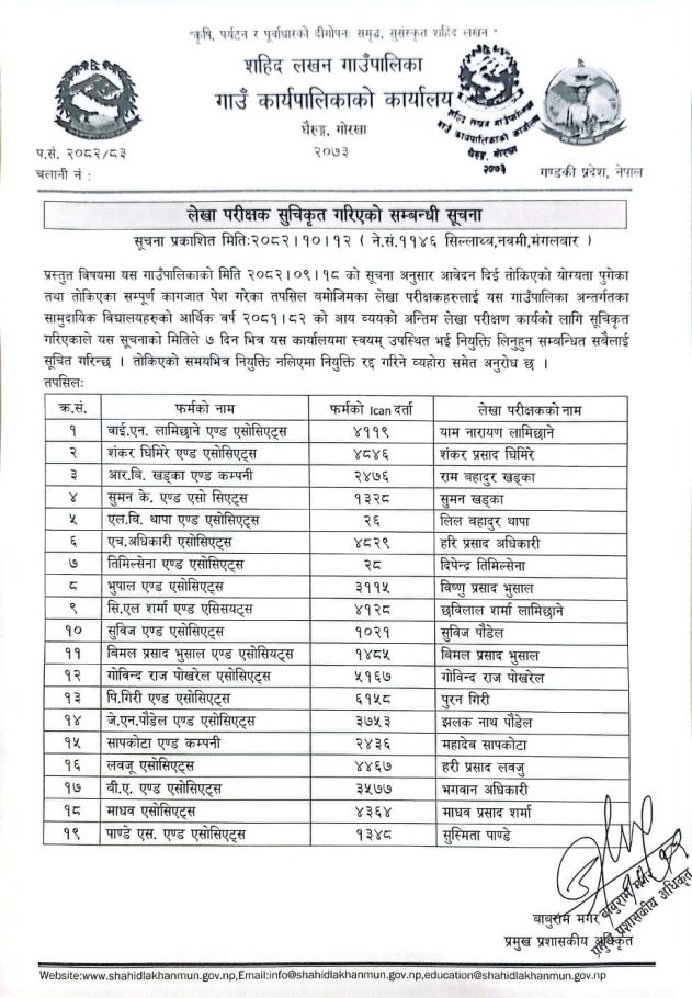 लेखापरीक्षक स्वीकृत गरिएको सम्बन्धमा।