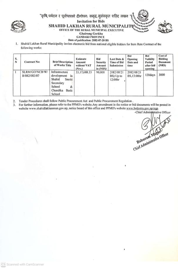 सार्वजनिक खरिद/बोलपत्र सूचना
