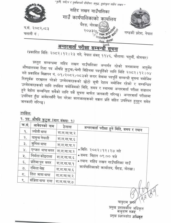 » अन्तरवार्ता परीक्षा सम्बन्धी सूचना ।