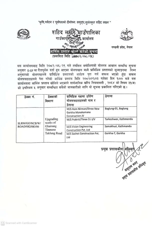 आर्थिक प्रस्ताव खोल्ने बारेको सूचना।