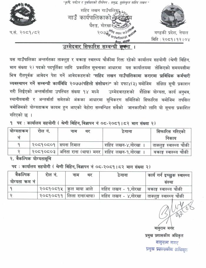 » उम्मेदवार सिफारिस सम्बन्धी सूचना ।