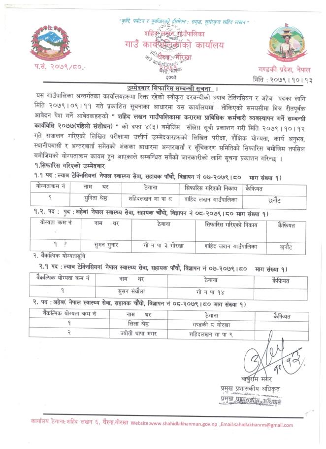 उम्मेदवार सिफारिस सम्बन्धी सूचना!!