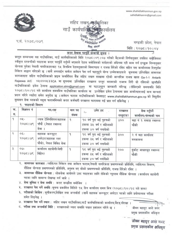 » करार सेवामा पदपूर्ति सम्बन्धी सूचना ।
