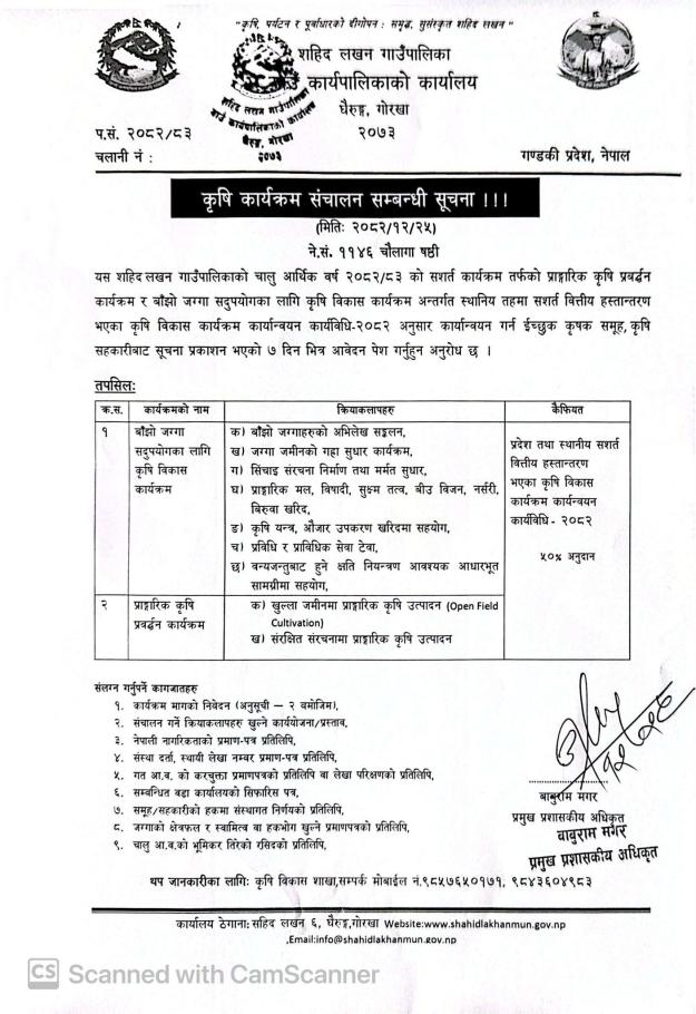 » कृषि कार्यक्रम सञ्चमलन सम्बन्धी सूचना।