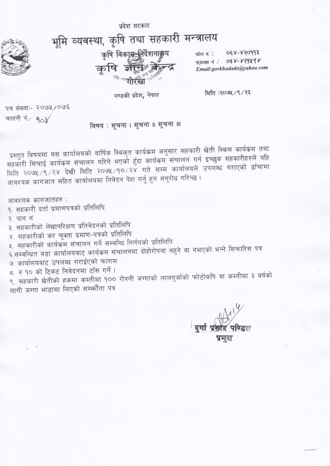 कृषि शाखाको प्रस्तावना पेश गर्ने सम्बन्धि सुचना