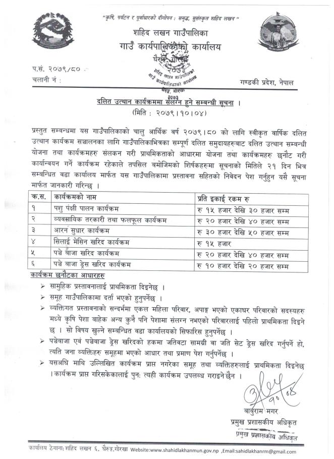 दलित उत्थान कार्यक्रममा संग्लन हुने सम्बन्धी सूचना !!