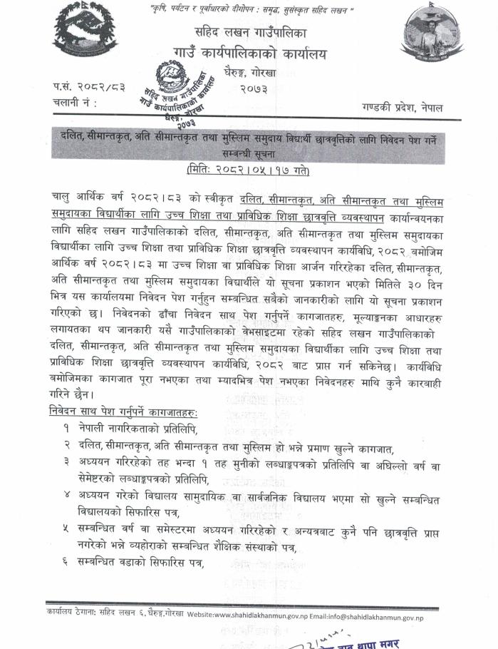 » दलित, सीमान्तकृत, अति सीमान्तकृत तथा मुस्लिम समुदाय विद्यार्थी छात्रवृत्तिको लागि निवेदन पेश गर्ने सम्बन्धी सूचना