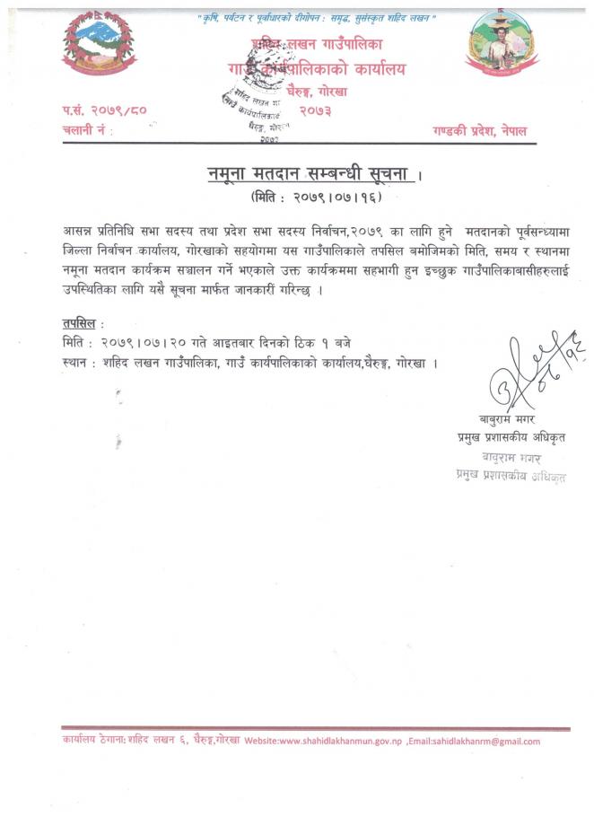 » नमुना मतदान सम्बन्धी सूचना