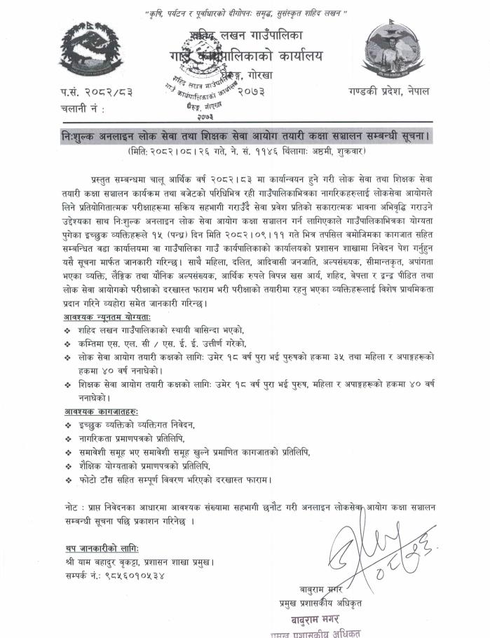 निःशुल्क अनलाइन लोक सेवा तथा शिक्षक सेवा आयोग तयारी कक्षा सञ्चालन सम्बन्धी सूचना।
