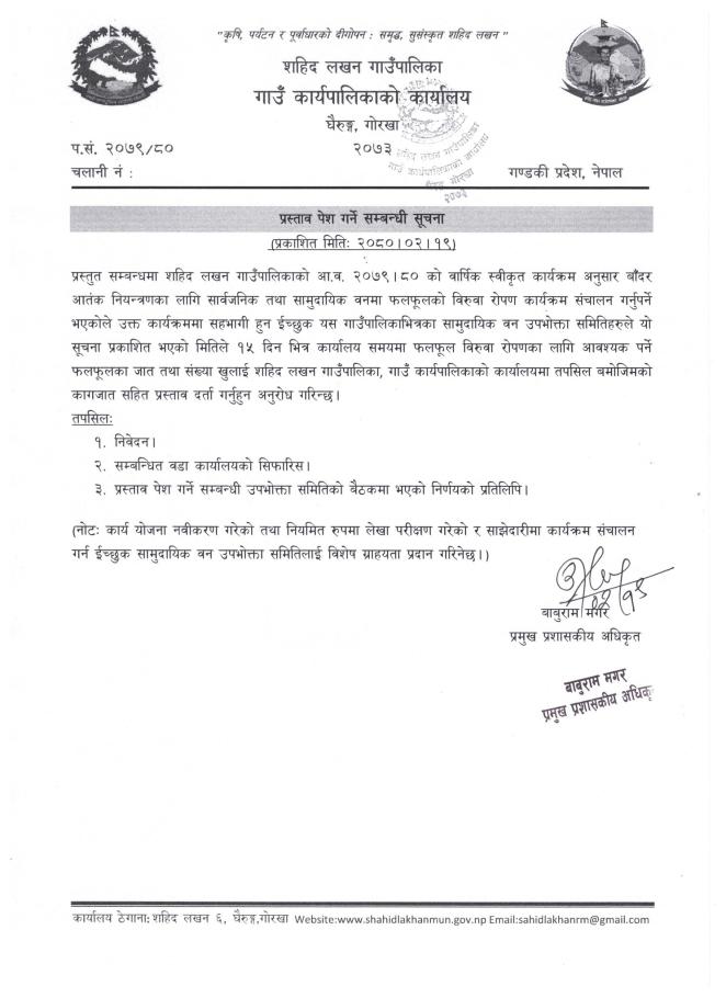 प्रस्ताव पेश गर्ने सम्बन्धी सूचना (मितिः २०८०।०२।१९)