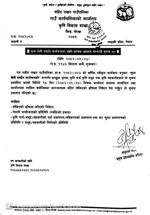 » फूल खेती प्रवर्द्धन कार्यक्रमको लागि प्रस्ताव आव्हान सम्बन्धी सूचना !!!!