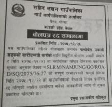 » बोलपत्र रद्द गरिएको सम्बन्धि सूचना