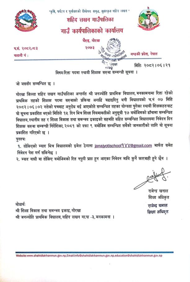 रिक्त पदमा स्थायी शिक्षक सरुवा सम्बन्धी सूचना।