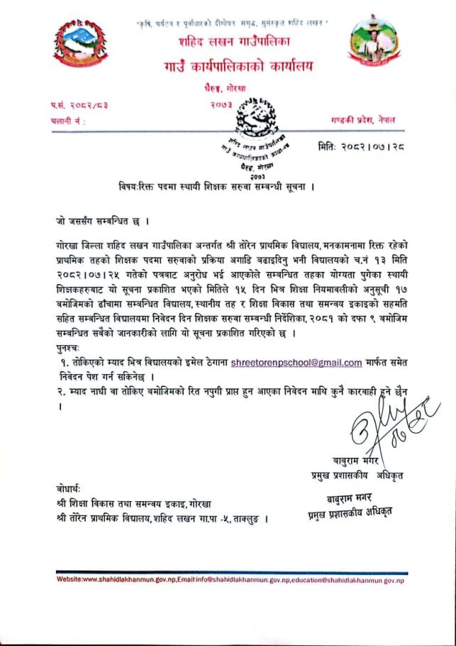 रिक्त पदमा स्थायी शिक्षक सरुवा सम्बन्धी सूचना।