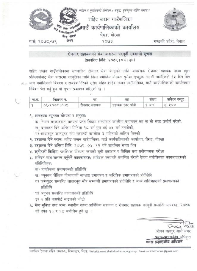 रोजगार सहायकको सेवा करारमा पदपूर्ति सम्बन्धी सूचना