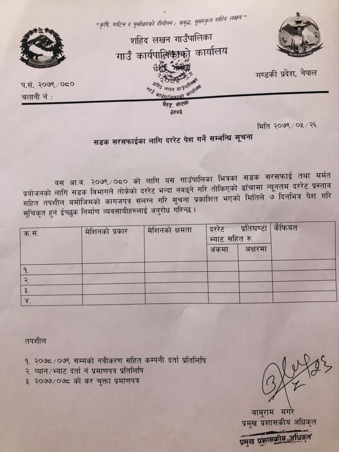» सडक सरसफाईका लागि दररेट पेश गर्ने सम्बन्धी सूचना ।