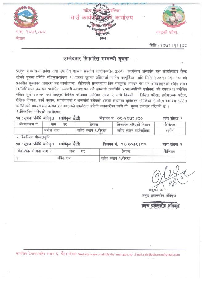 सूचना प्रविधि अधिकृत पदका लागि उम्मेदवार सिफारिस सम्बन्धी सूचना ।