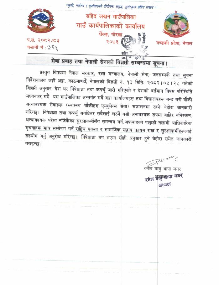 » सेवा प्रवाह तथा नेपाली सेनाको विज्ञप्ती सम्बन्धमा सूचना।