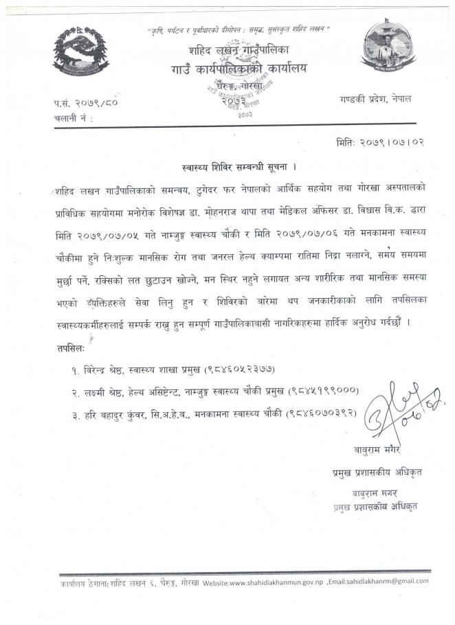 स्वास्थ्य शिविर संचालन सम्बन्धी सूचना