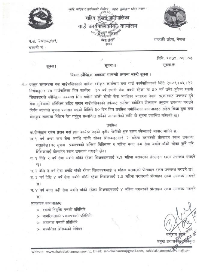 स्वैच्छिक अवकाश सम्बन्धी अत्यन्त जरुरी सुचना