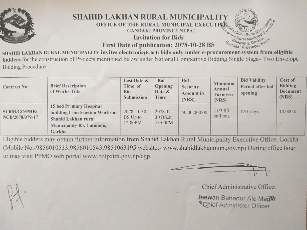 सार्वजनिक खरिद/बोलपत्र सूचना