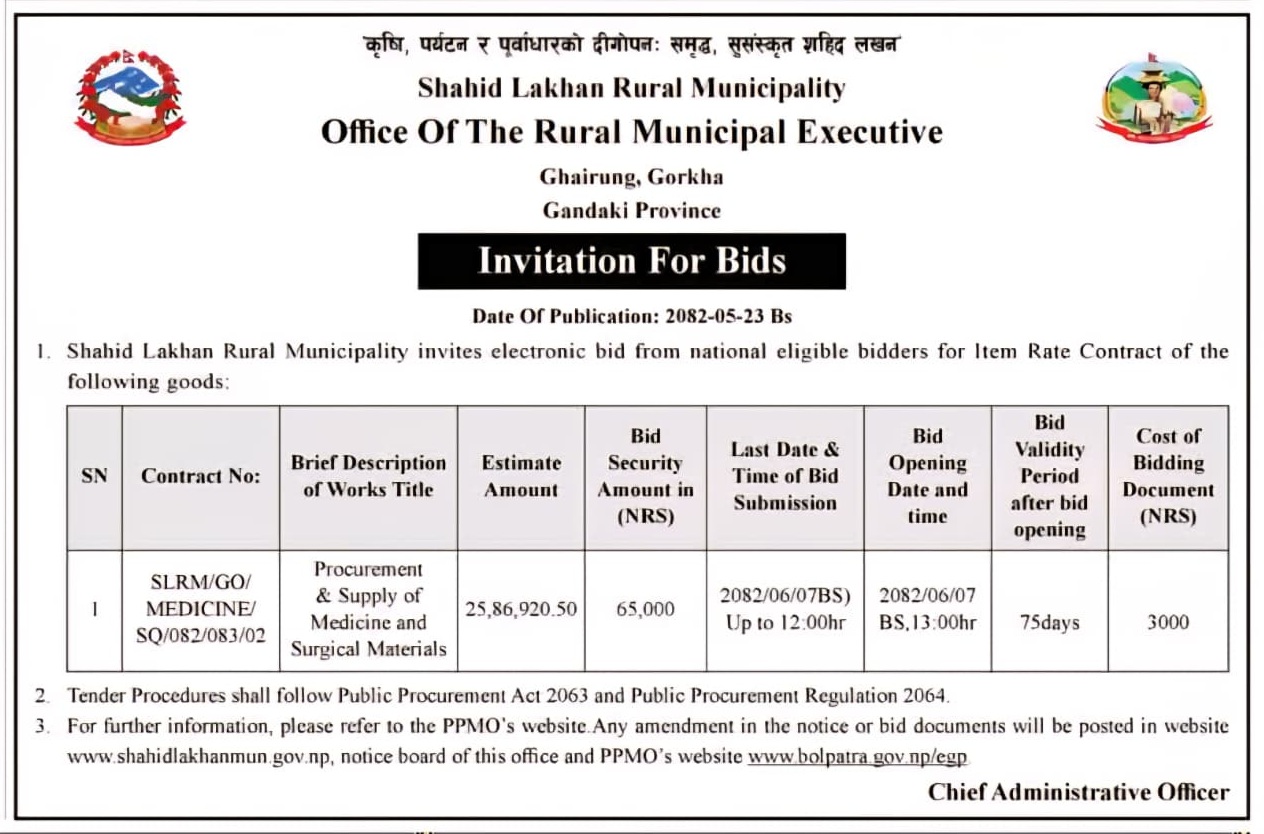 सार्वजनिक खरिद/बोलपत्र सूचना