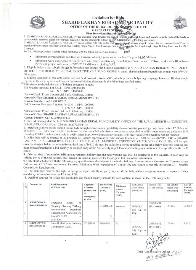 सार्वजनिक खरिद/बोलपत्र सूचना
