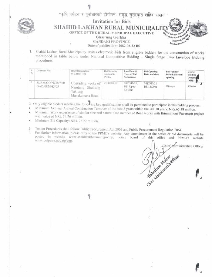 सार्वजनिक खरिद/बोलपत्र सूचना