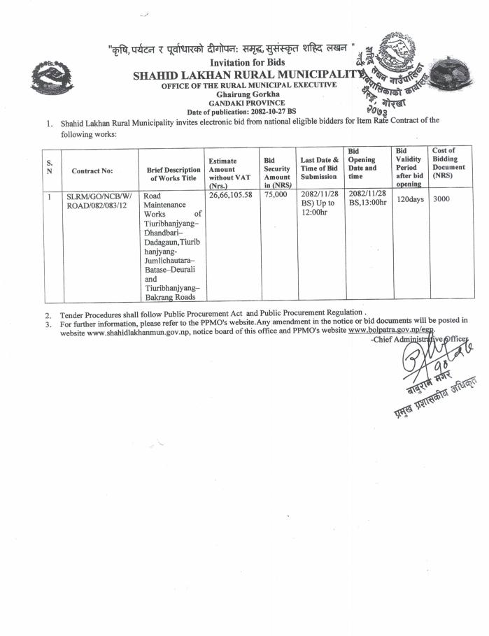 सार्वजनिक खरिद/बोलपत्र सूचना